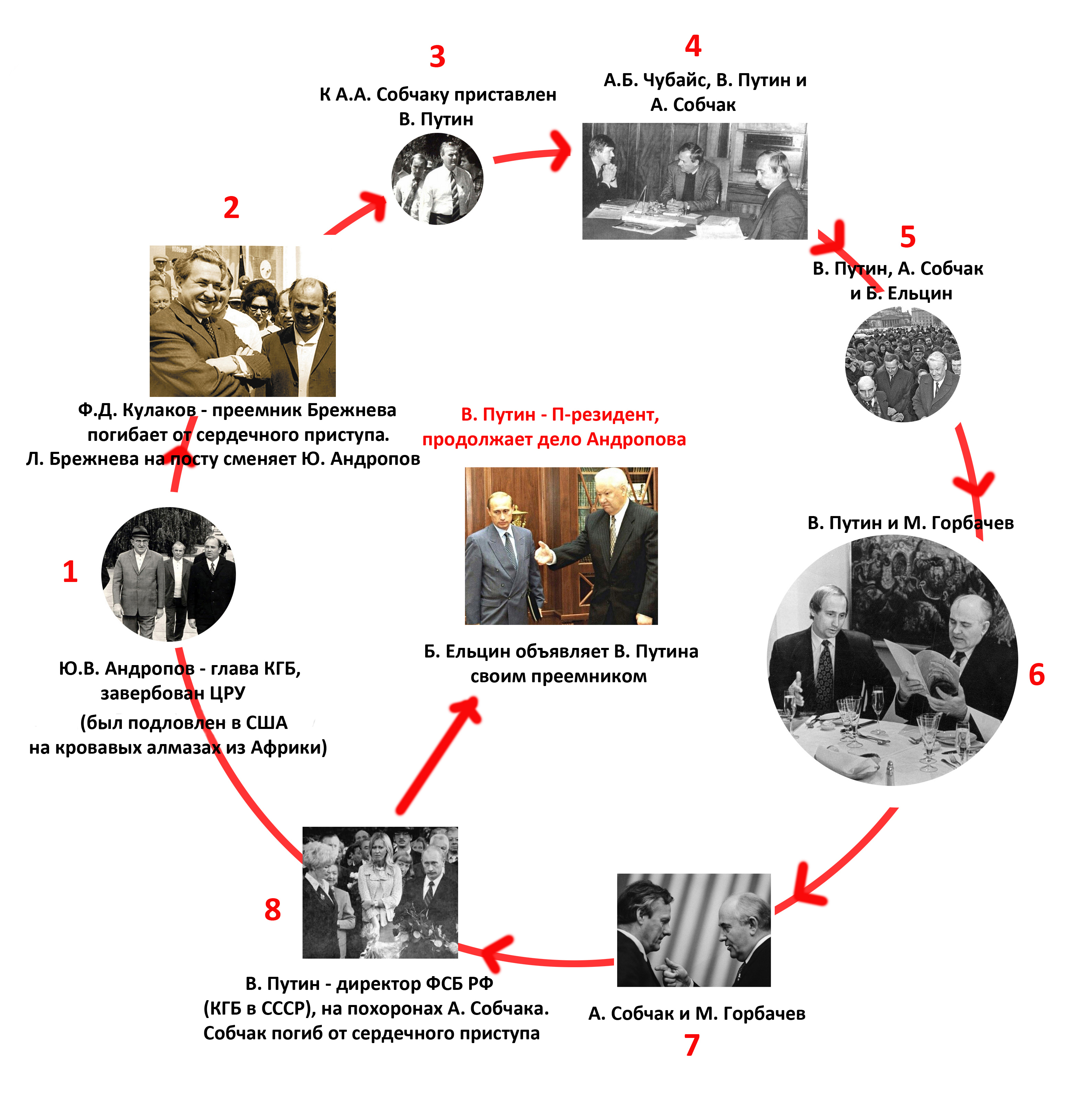 В. В. Путин бросил блестящую карьеру чекиста-разведчика. В ГДР зафиксирован контакт с «коллегами». У Кучмы и за рубежом активно выкупал компромат на себя, не пошел на родную кафедру Вуза, а оказался рядом с А. Собчаком.